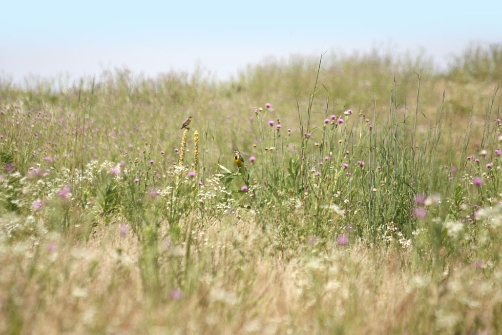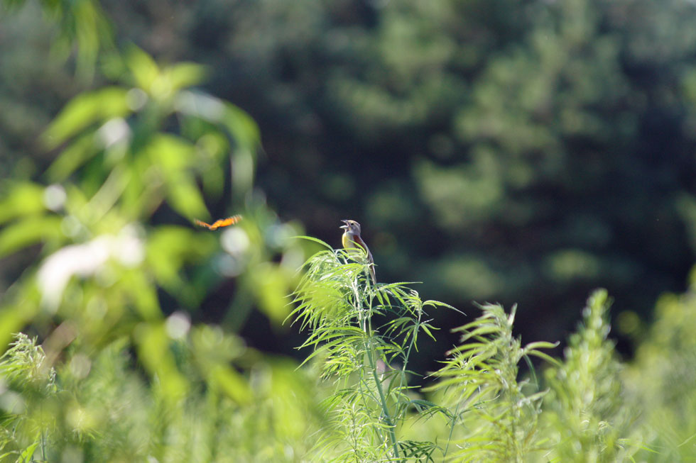 We could have spent the weekend working on projects around the house but decided that birding and hiking would be more fun. Yesterday we went for a drive in the morning south of Stoughton on some rural rounds to look for Dickcissels. We found a few and I got a couple decent pictures although they are rather shy birds and hard to get close enough to to photograph. In the evening we drove over to Lake Kegonsa State Park for a walk. We took Maisy along too. The first part of the walk is near the woods and the mosquitos were HORRENDOUS. We even had mosquito repellent which didn’t seem to make much of a difference. They were biting through our clothing. This morning we went to the Brooklyn Wildlife area to look for Bobolinks. We didn’t see any but did see more Dickcissels and Meadowlarks.