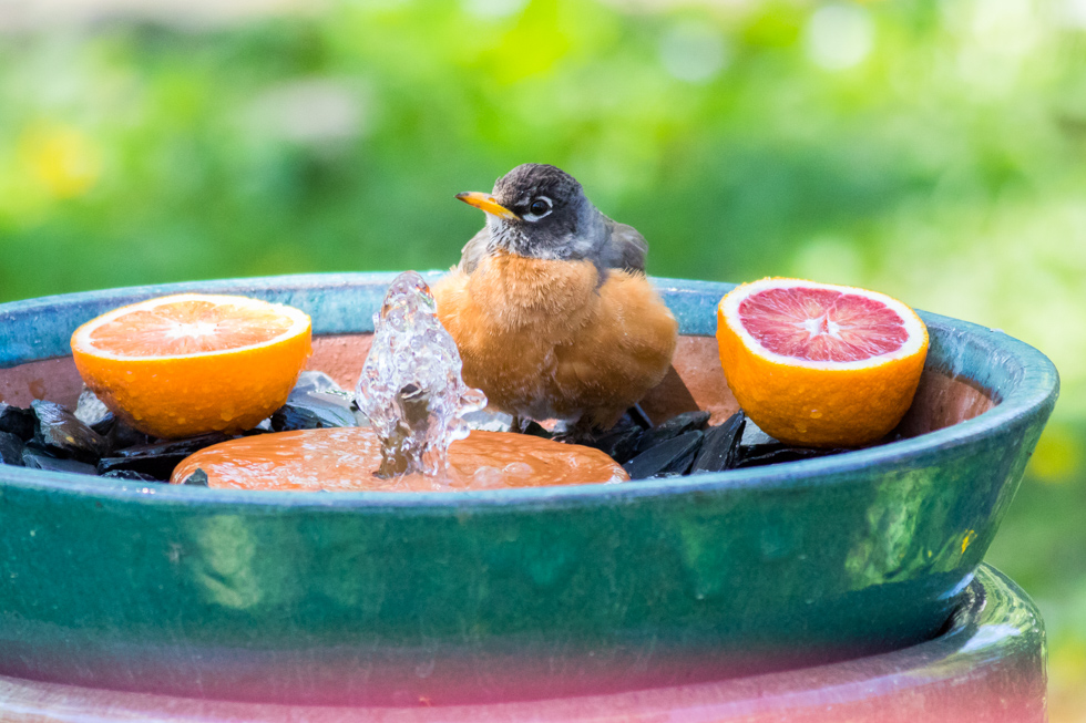 The Robins are the most frequent visitors to the fountain. The Goldfinches like it also.