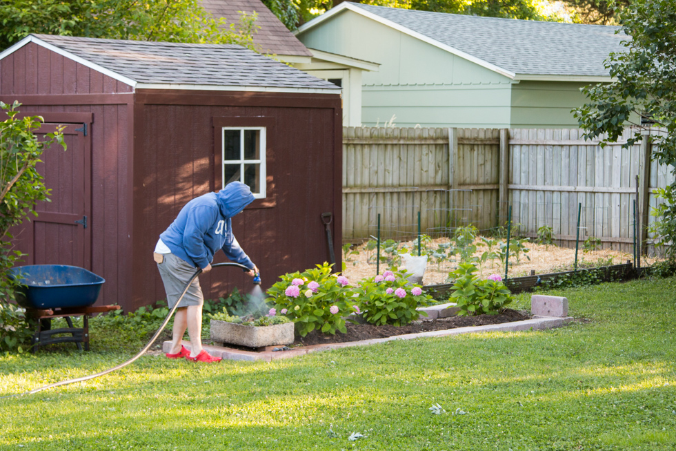 This past year, I’ve been thinking about ways to make the yard a more appealing sanctuary for birds. I’d like to attract a greater variety — not that there is anything wrong with the usual cast of characters — by planting specialized plants and adding a water feature. I have a regular birdbath but last year I made a fountain to create some moving water, that is supposed to be more attractive to birds. Last fall, we planted a Serviceberry, also known as Juneberry, as there are many species of birds that feast on the fruits. Now I’m contemplating another water feature in the yard. Not a pond but a buried reservoir that will circulate water to the surface via a pond pump. Still working out the details. At any rate, things are looking pretty good back here. It helps that we’ve had plenty of rain and sunshine to make everything look spiffy.