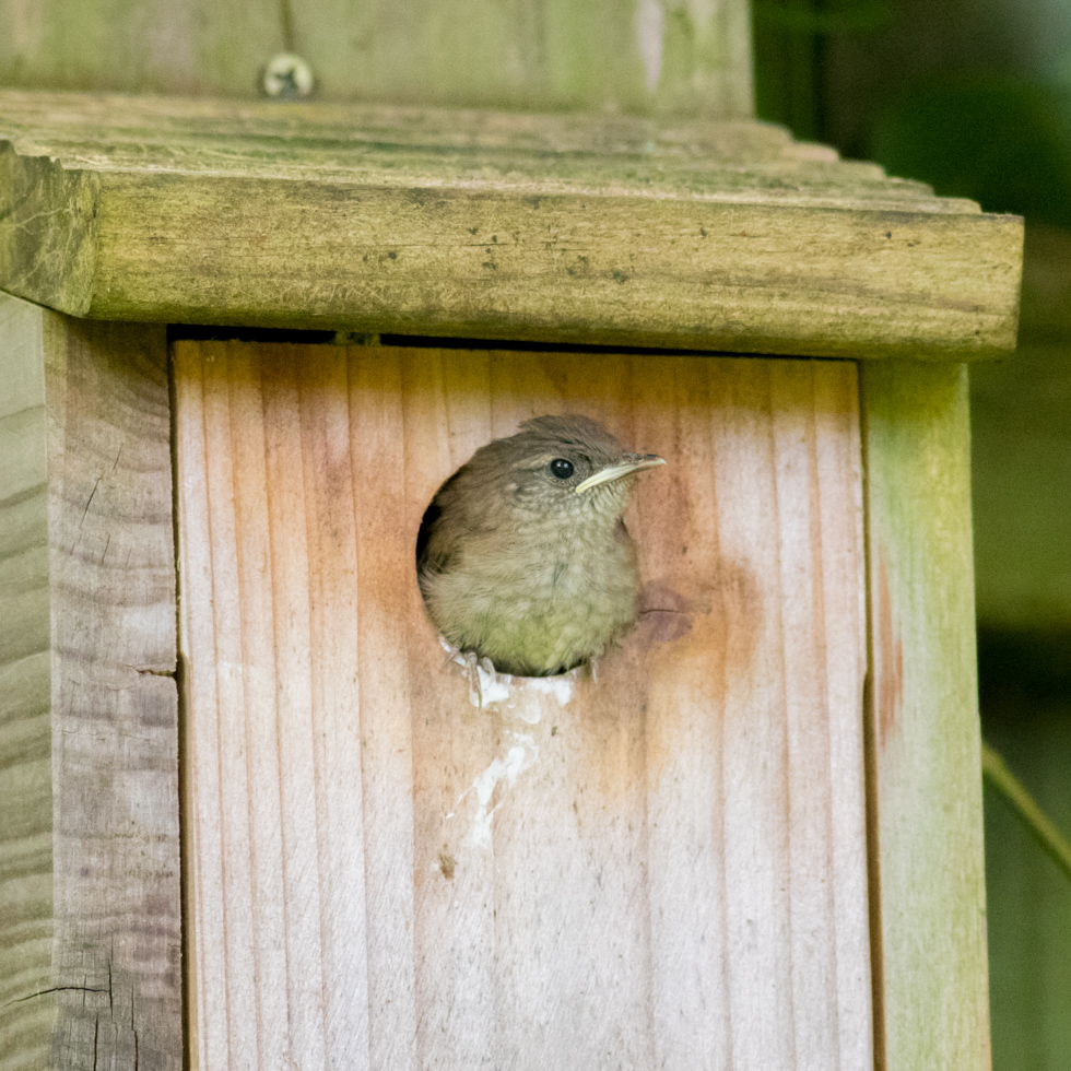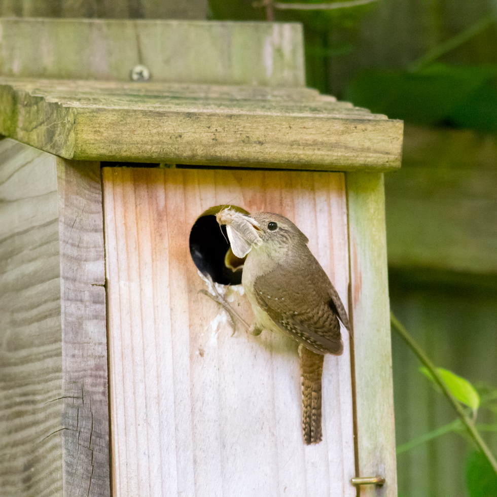 This past week our wrens fledged 4 youngsters. The nest failed last year so we were happy to see the brood do so well this year. The variety of bugs that the parents provided was astounding—moths, grubs, spiders and beetles.