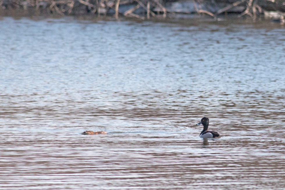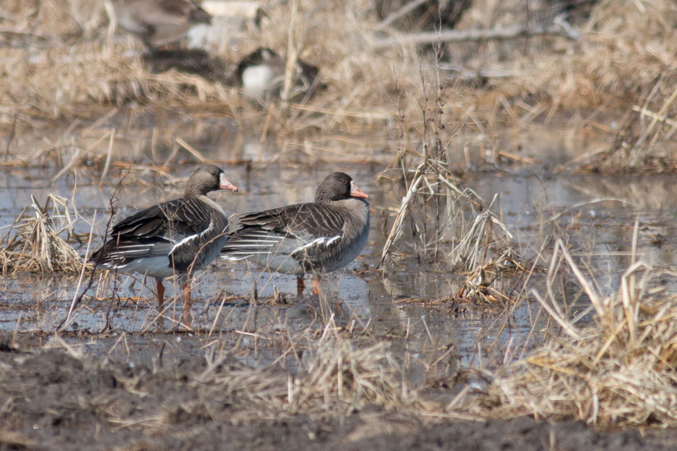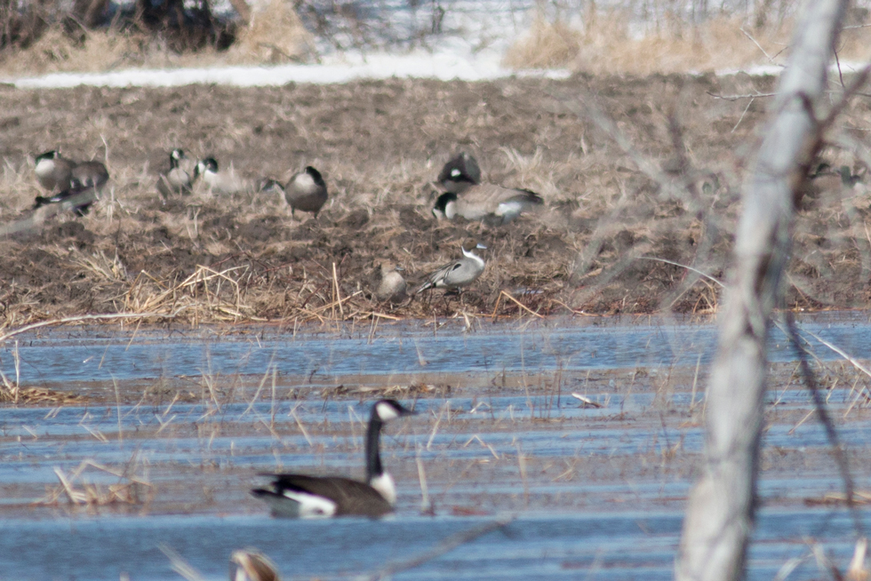 This is a really bad photo, but if you look close, you’ll see a pair of Northern Pintail ducks way towards the back.