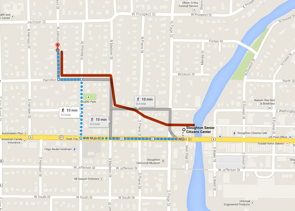 Here is a map of the route that the mother duck chose to lead her ducklings to water. It was a pretty direct route and the instinctual sense of direction is incredible considering that in previous trips, she went by air.