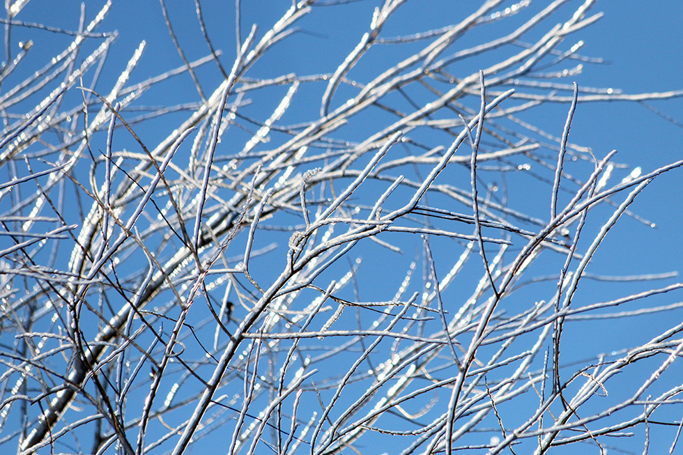 The ice we had last week is still coating the trees and added a sparkle to everything.