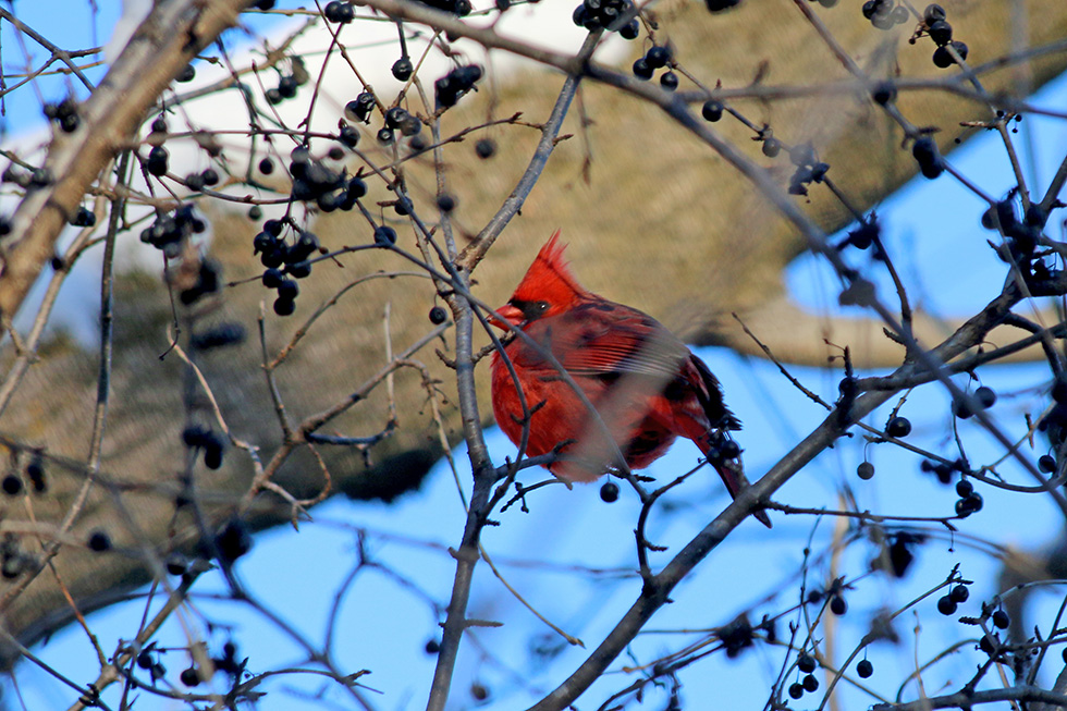 The cardinals were active eating berries and didn’t seem to mind.