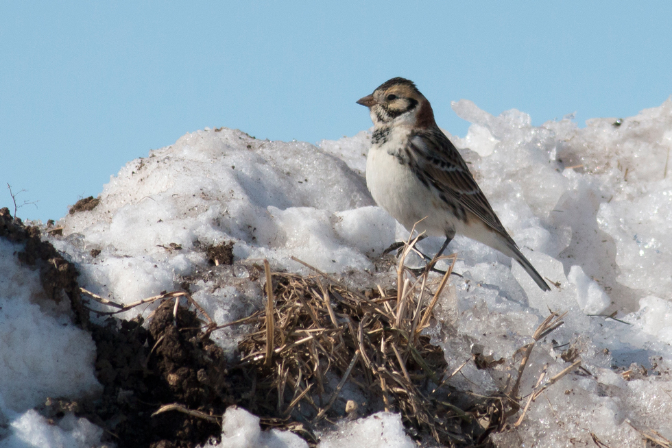 Lapland Longspur or Lapland Bunting. Summertime resident of the Arctic tundra, winter resident of Wisconsin.